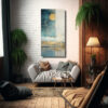 Lienzo Vertical Vida Con Acuarela Blanco, Turquesa Y Oro En Pintura Para Decoración