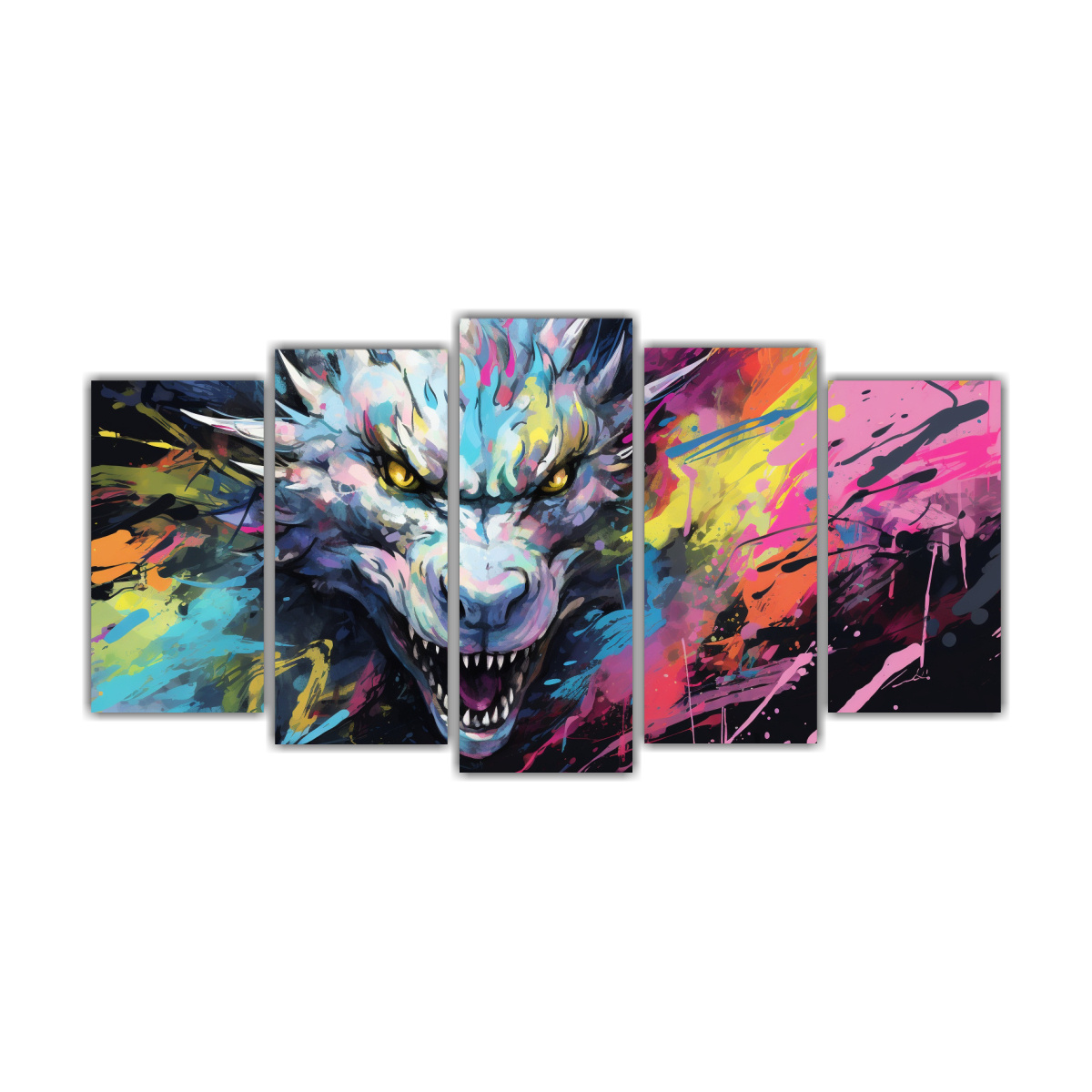 Este cuadro con dragón en tonos pastel y negro es ideal para colocar en una sala de estar moderna o en un estudio creativo Combínalo con muebles de líneas limpias en colores neutros para resaltar su diseño único Asegúrate de ubicarlo en un lugar donde reciba buena iluminación para resaltar sus colores vibrantes