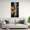 Los Lienzos acuarela para Comedor: Reflejos abstractos urbanos en calles mojadas son perfectos para darle un toque moderno a tu comedor Estos cuadros impresos en tela de alta calidad con bastidores de madera muestran una hermosa combinación de colores como Coral, Negro, Turquesa, Dorado, Carmesi, Plateado, Gris y Azul Marino grisaceo, creando un efecto abstracto que refleja la belleza de las calles mojadas por la lluvia No encontrarás diseños exclusivos como estos en ninguna otra tienda