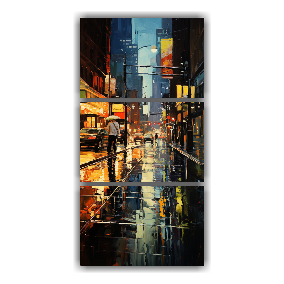 Lienzos Acuarela Para Comedor: Reflejos Abstractos Urbanos En Calles Mojadas Por La Lluvia