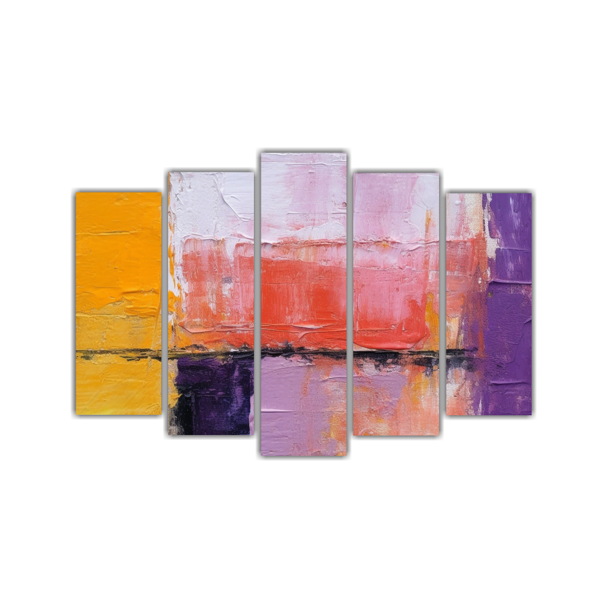 Para resaltar la elegancia de este set de 5 lienzos abstractos en tu sala de estar, te recomiendo colocarlos en una pared blanca para crear un contraste impactante Combínalos con muebles en tonos neutros para un ambiente moderno y sofisticado