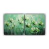 Lienzos Concepto Perspectiva En Verde Y Azul Con Flores En Lienzo Para Decoración