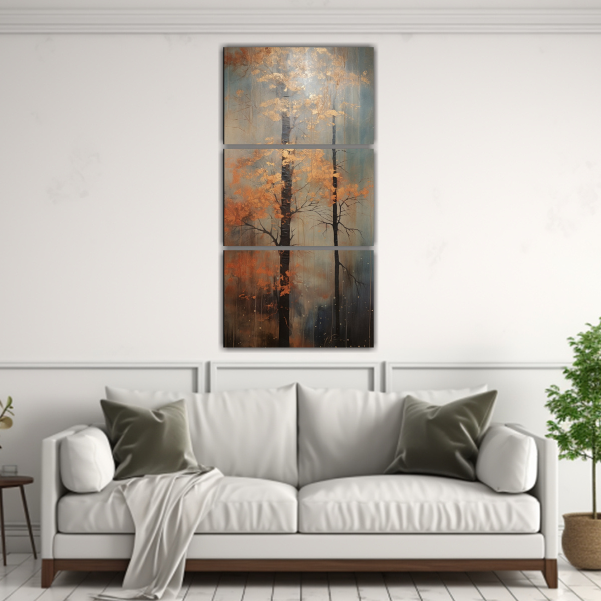 Lienzos Cuadro Intensidad Bosque Empapado De Lluvia Set 3 Pinturas Decorativas