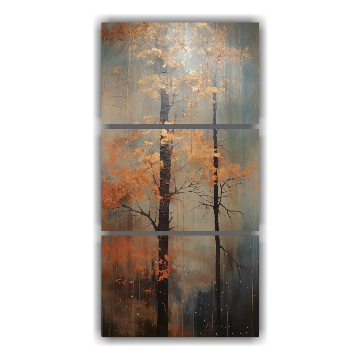 Decora tu hogar con los Set 3 Lienzos Intensidad Bosque Lluvia de DecoCuadros La abstracta belleza de un bosque empapado de lluvia en tonos grisáceos, azul marino y plateado Diseños exclusivos de nuestra tienda Envío gratis en Santiago y envíos express a regiones