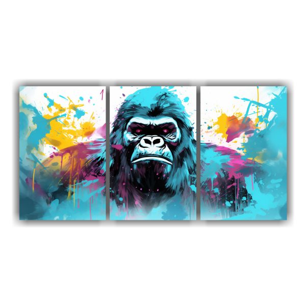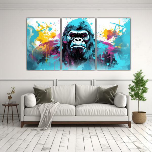 Este cuadro de Gorilas en colores luminosos y acuamarinos sería ideal para colocar en la sala de estar, sobre un sofá de color neutro como beige o gris Aportará un toque moderno y vibrante a la decoración ¡Complementa con cojines en tonos dorados y turquesa para un ambiente sofisticado y elegante!