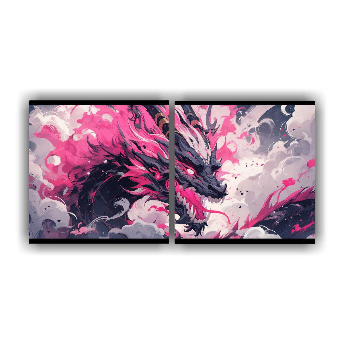Lienzos De Tela Comedor Tema Dragón Acuarelas Y Rosa, Neonoir.