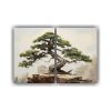 Lienzos De Tela Composición Equilibrada Árbol Pino Bonsái En Colores Amarillo Y Verde Neonoir