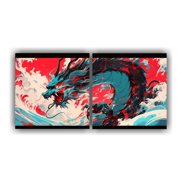 Decora tu hogar con estos espectaculares lienzos de tela con dragón en rojo y turquesa, ideales para crear una atmósfera neo-noir única Envíos rápidos y gratuitos en Santiago, ¡no te lo pierdas!