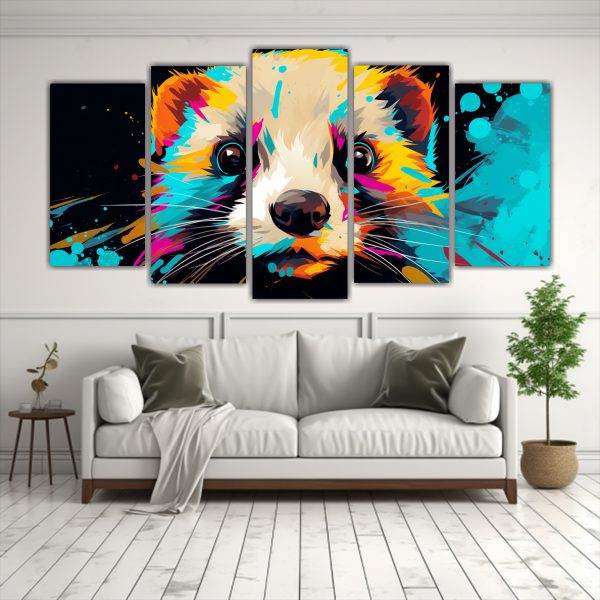 Lienzos De Tela Dormitorio Con Hurón En Colores Vibrantes Y Turquesa Neo Arte Pop