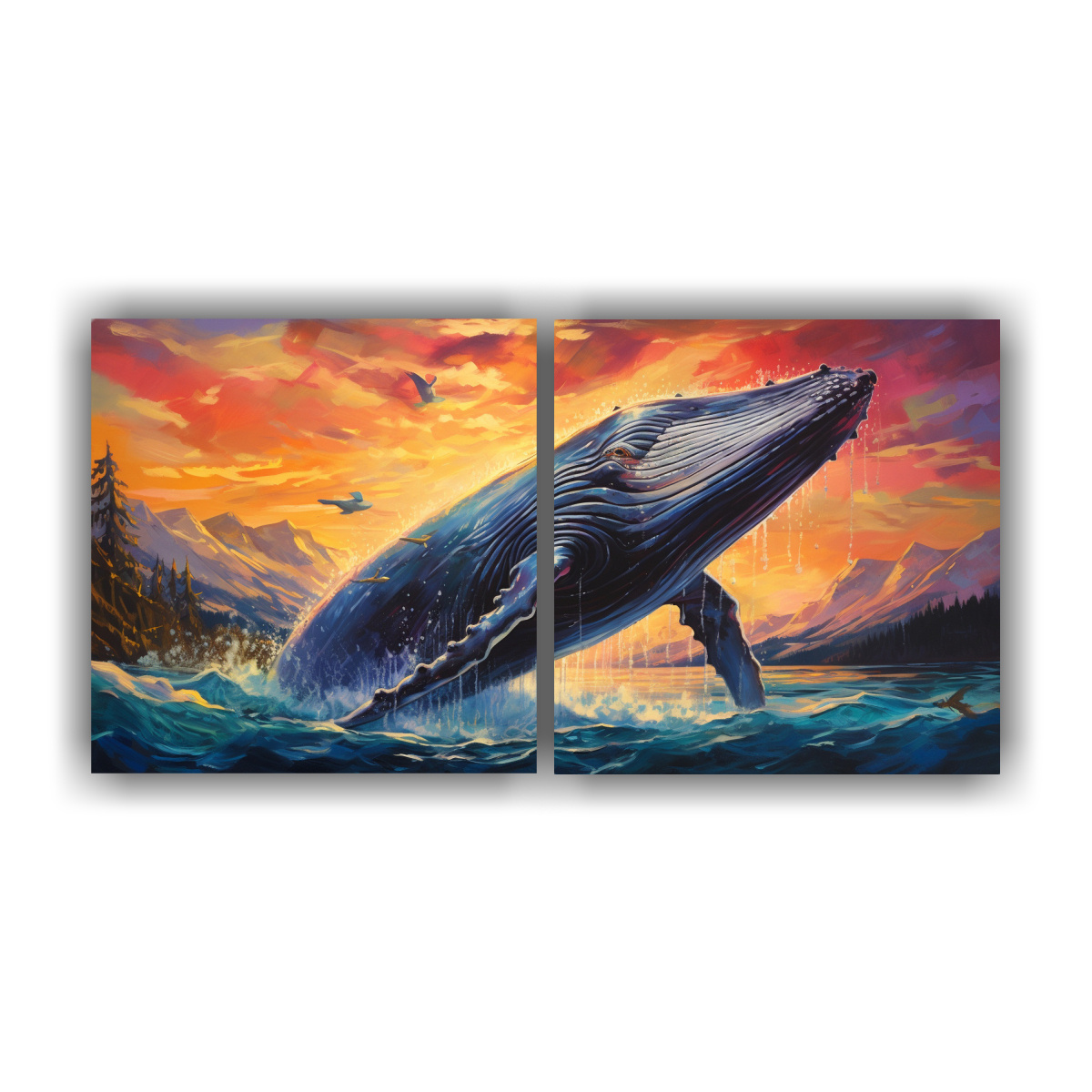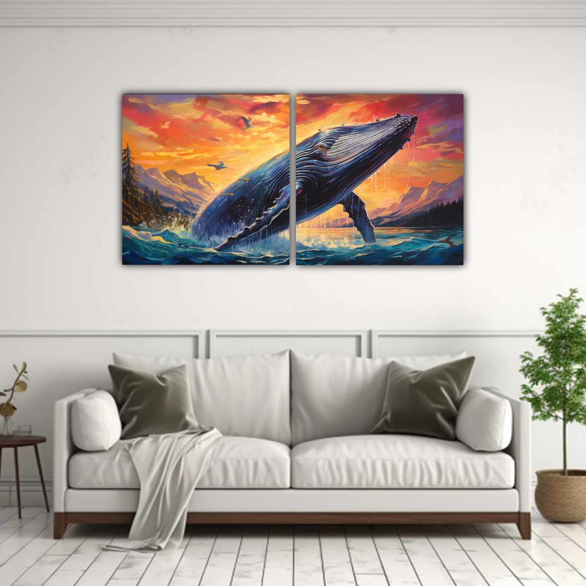 Este cuadro de una ballena jorobada en estilo pintura al Estilo óleo es ideal para colocar en la sala de estar sobre un sofá de color neutro Su paleta de colores cálidos como el Coral y el Carmesí destacará perfectamente en una pared blanca o gris, creando un ambiente sofisticado y acogedor