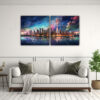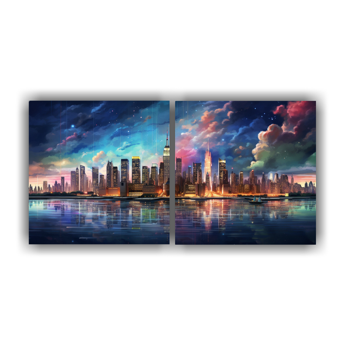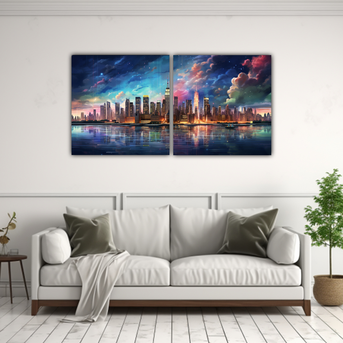 Lienzos De Tela Forma Original De Nueva York Con Luces Coloridas