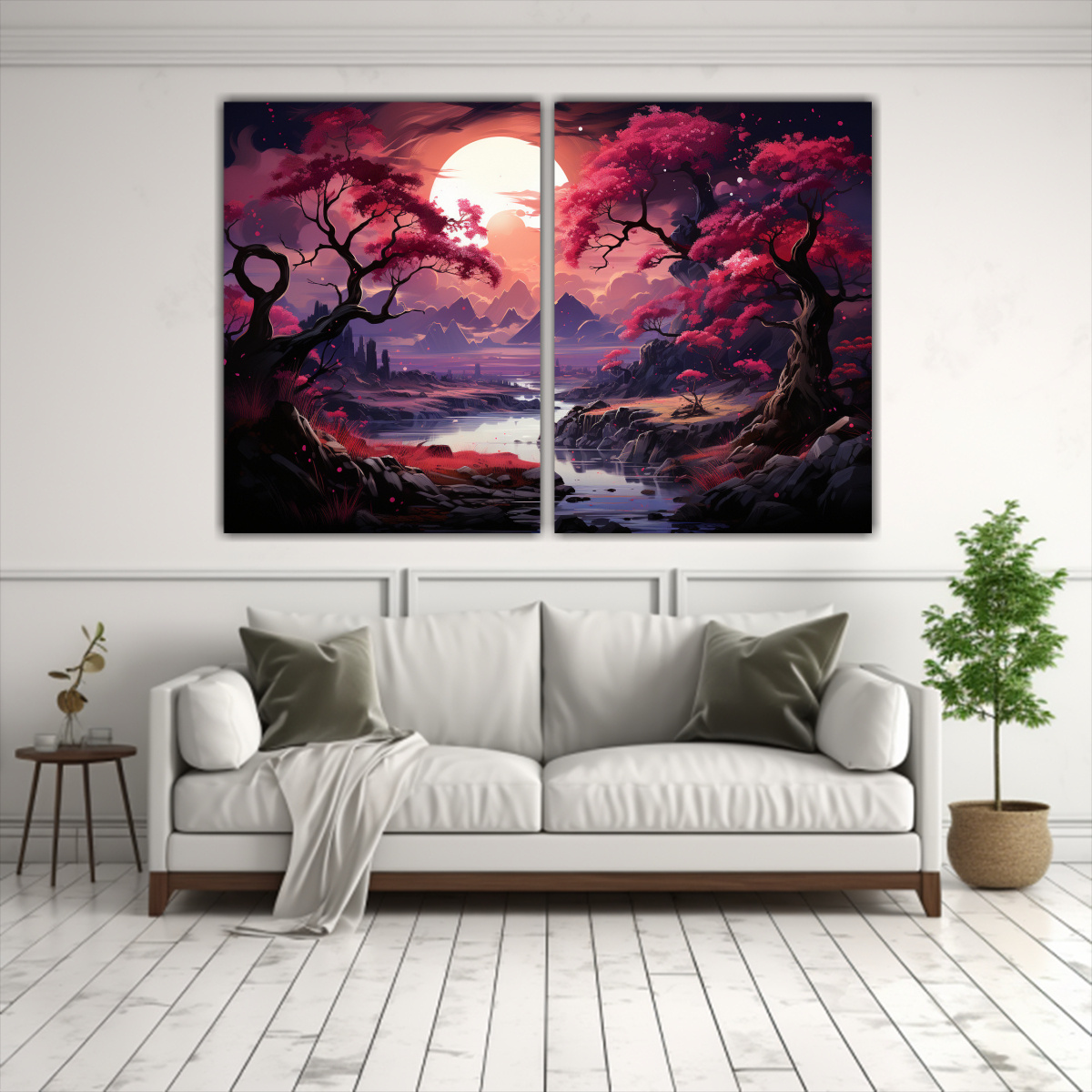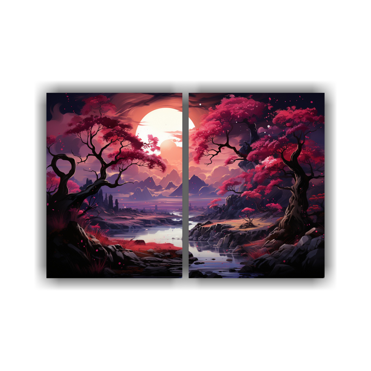 Lienzos De Tela Inspiracion Adorno Árbol De Algodón En Morado Y Rojo Atmosfera Neonoir