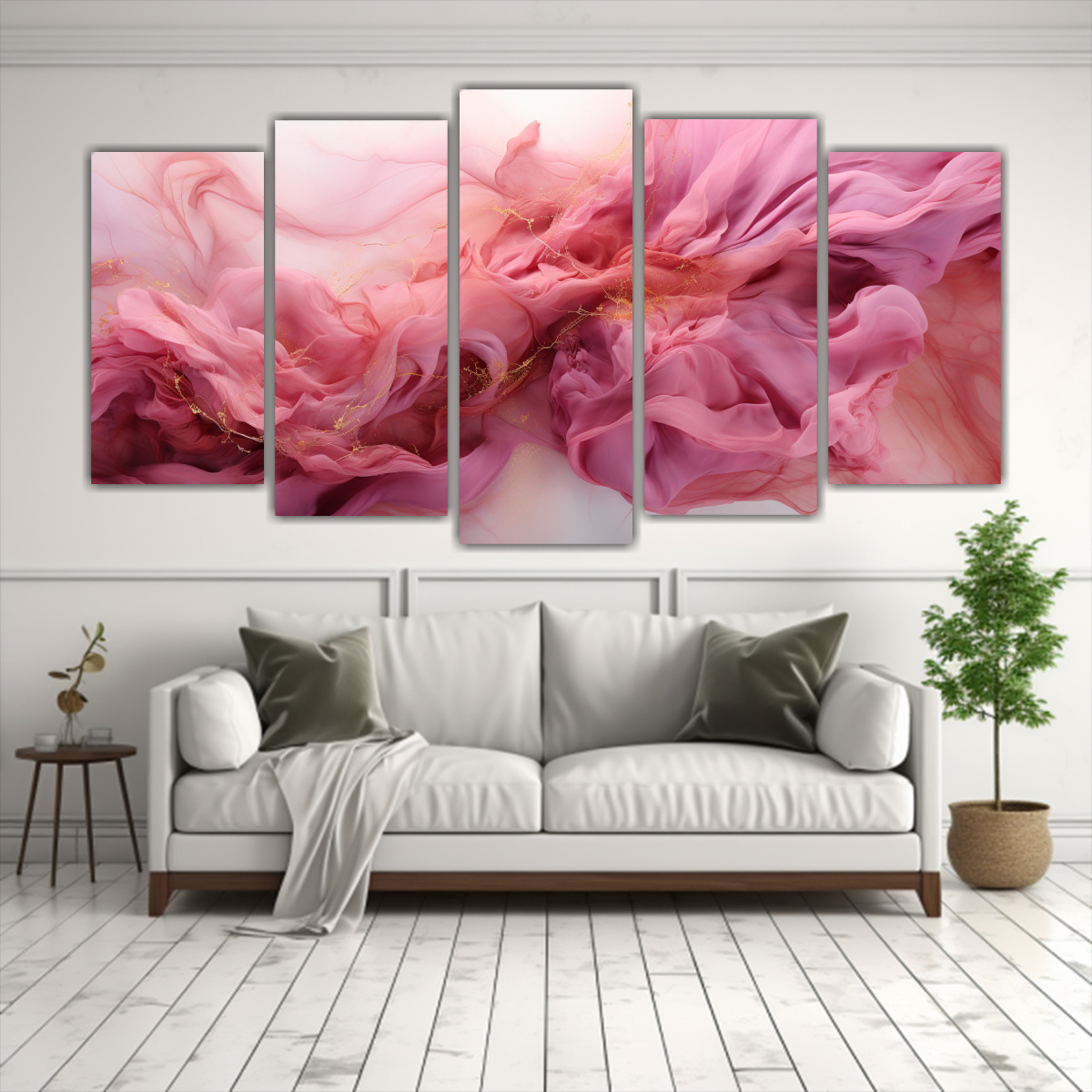 Lienzos De Tela Intensidad Rosa Y Oro Mármol Abstracto