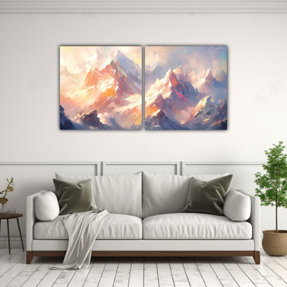 Renueva tu espacio con estas impresiones de alta calidad en tela, montañas cubiertas de nieve y arcoíris en tonos abstractos que dan un toque único a tu decoración Envíos gratuitos y rápidos en Santiago y a regiones express