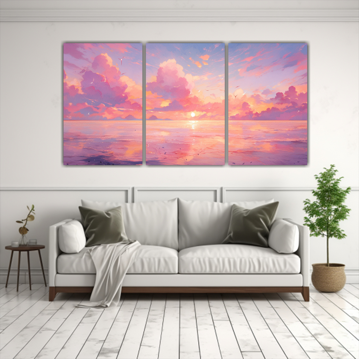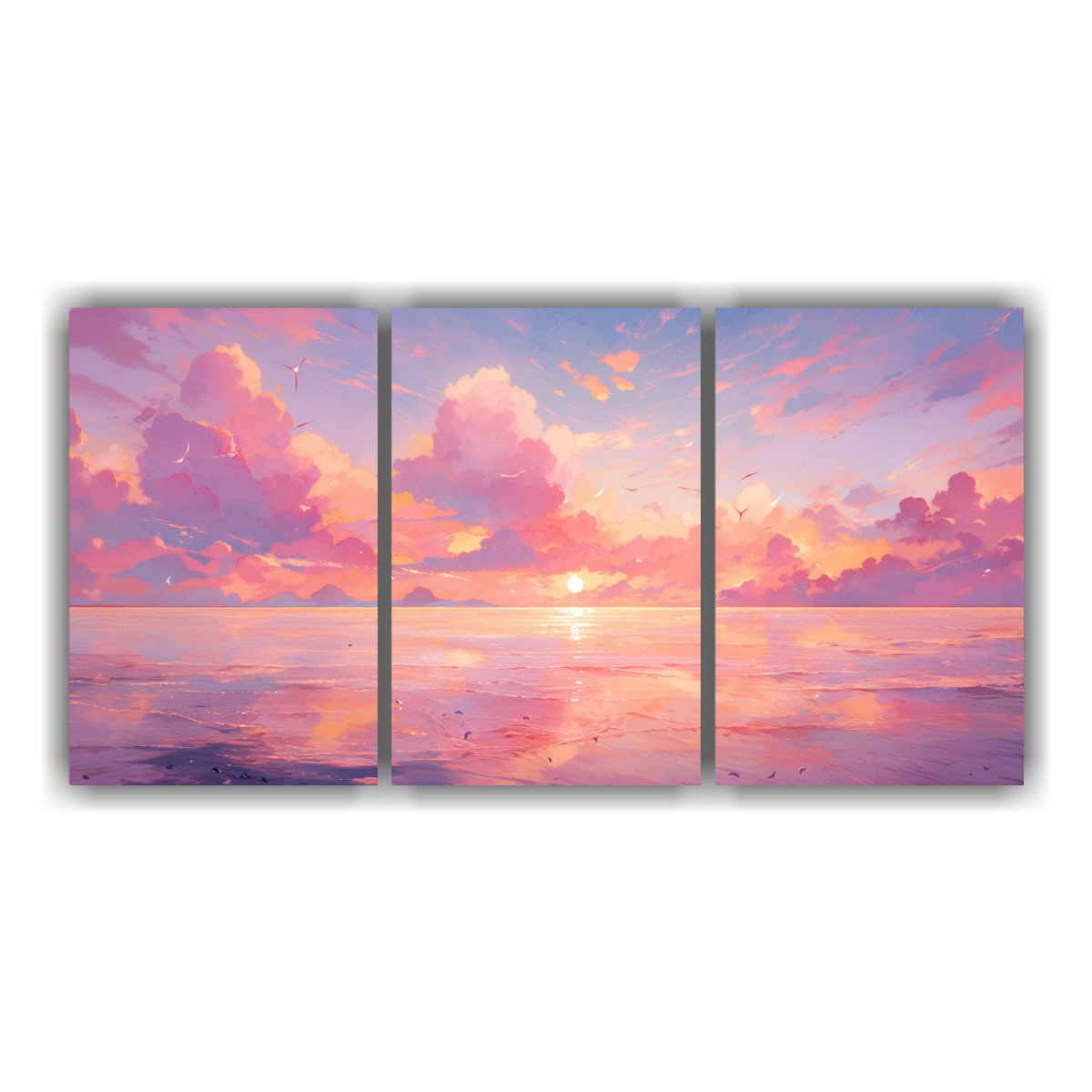 Lienzos De Tela Movimiento Abstracto Mar Y Cielo Con Colores Rosados
