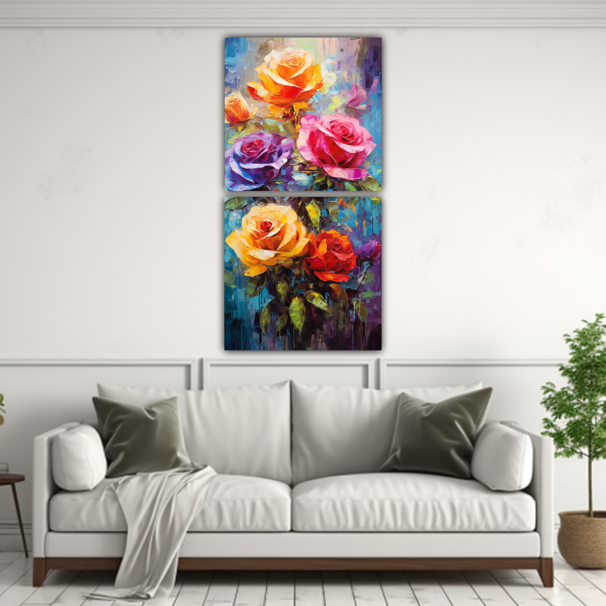 Decora tus espacios con los hermosos Lienzos de Tela Tonos Fantásticos con Pintura de Rosas en el Decorado Calidad y diseño exclusivo al mejor precio en DecoCuadros Envío express a regiones