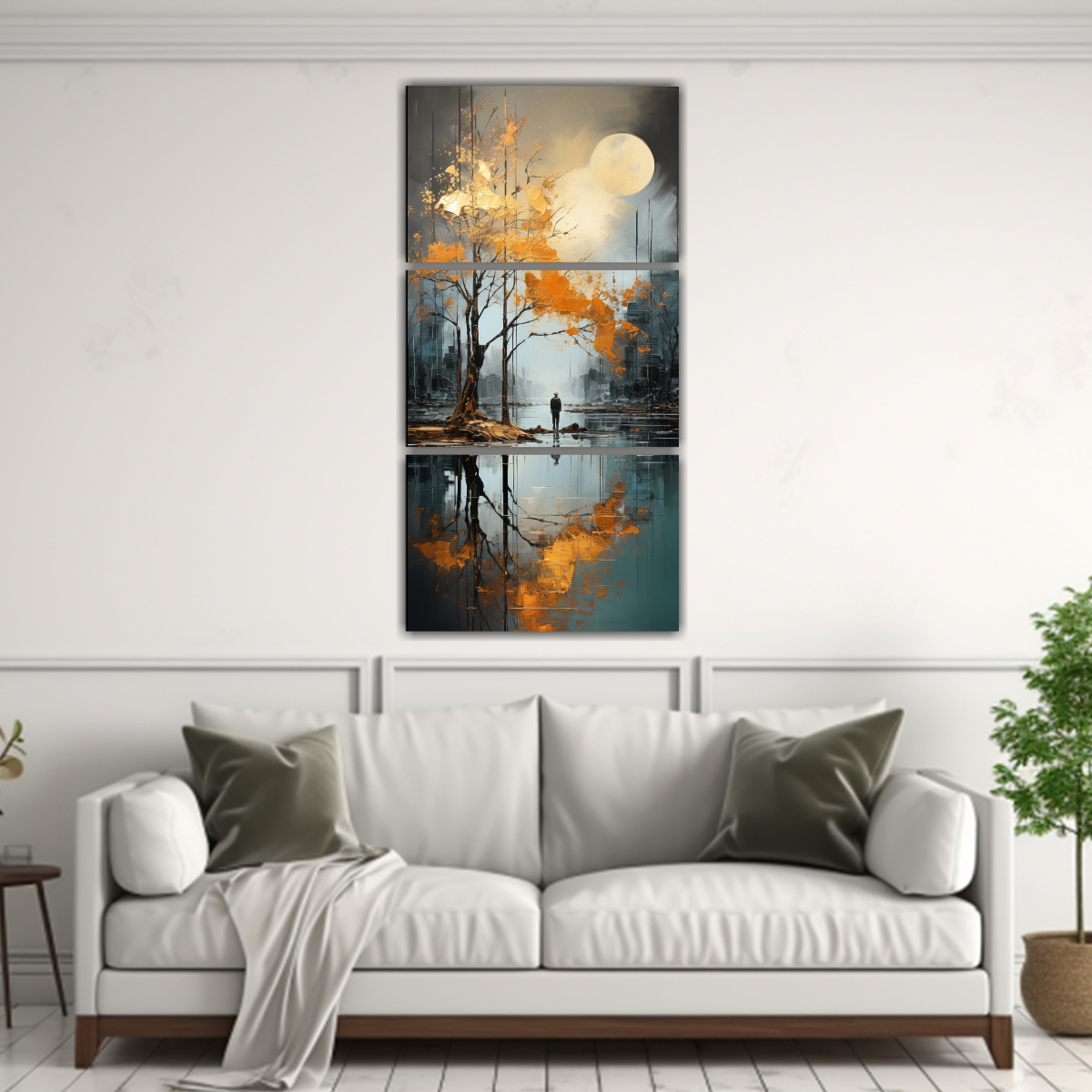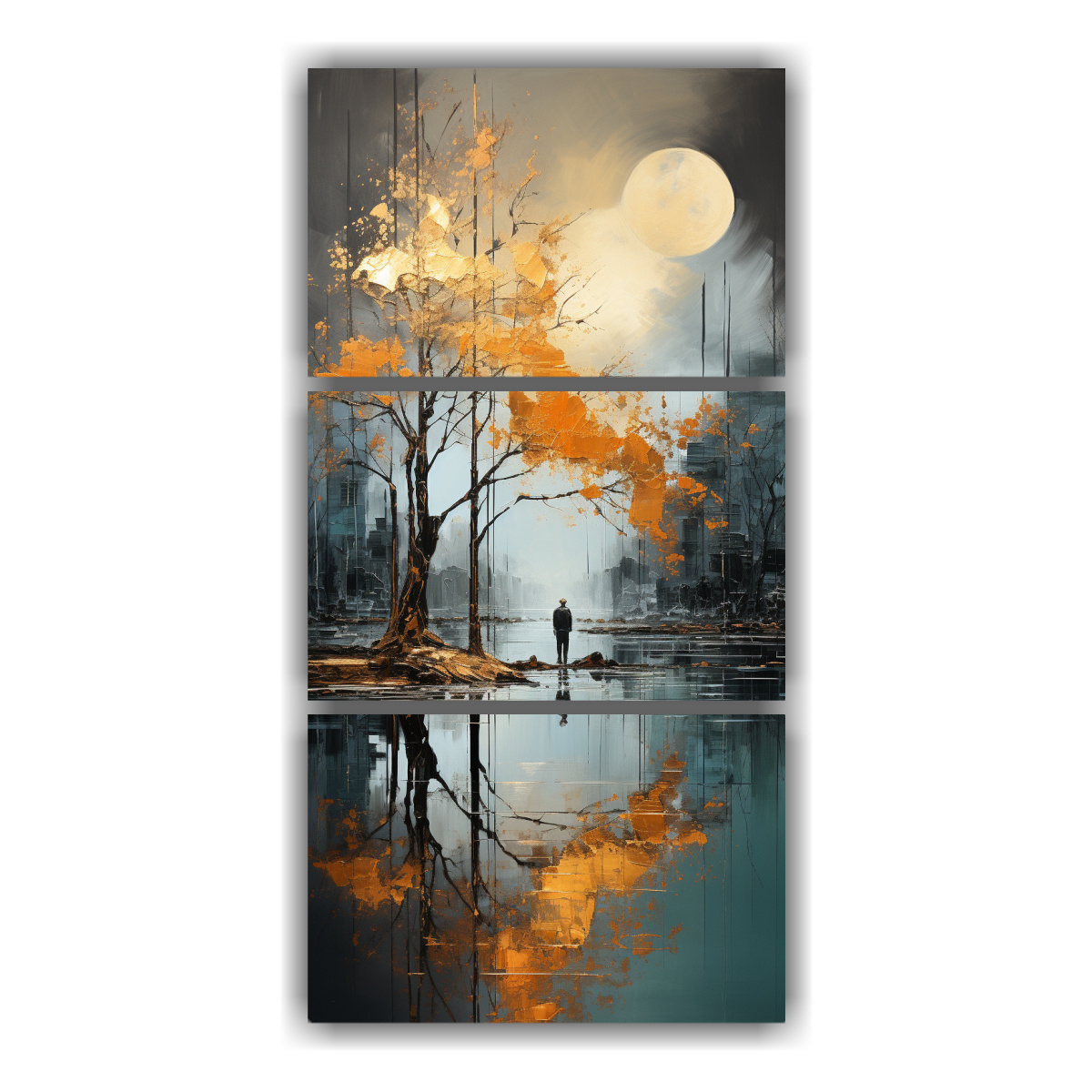 Este cuadro abstracto de árboles en plata y oro será perfecto para decorar tu sala de estar o dormitorio Combínalo con muebles en tonos neutros como blanco o gris, y agrega algunos cojines en colores coral o carmesí para resaltar los detalles del cuadro ¡Crearás un ambiente elegante y moderno en tu hogar!