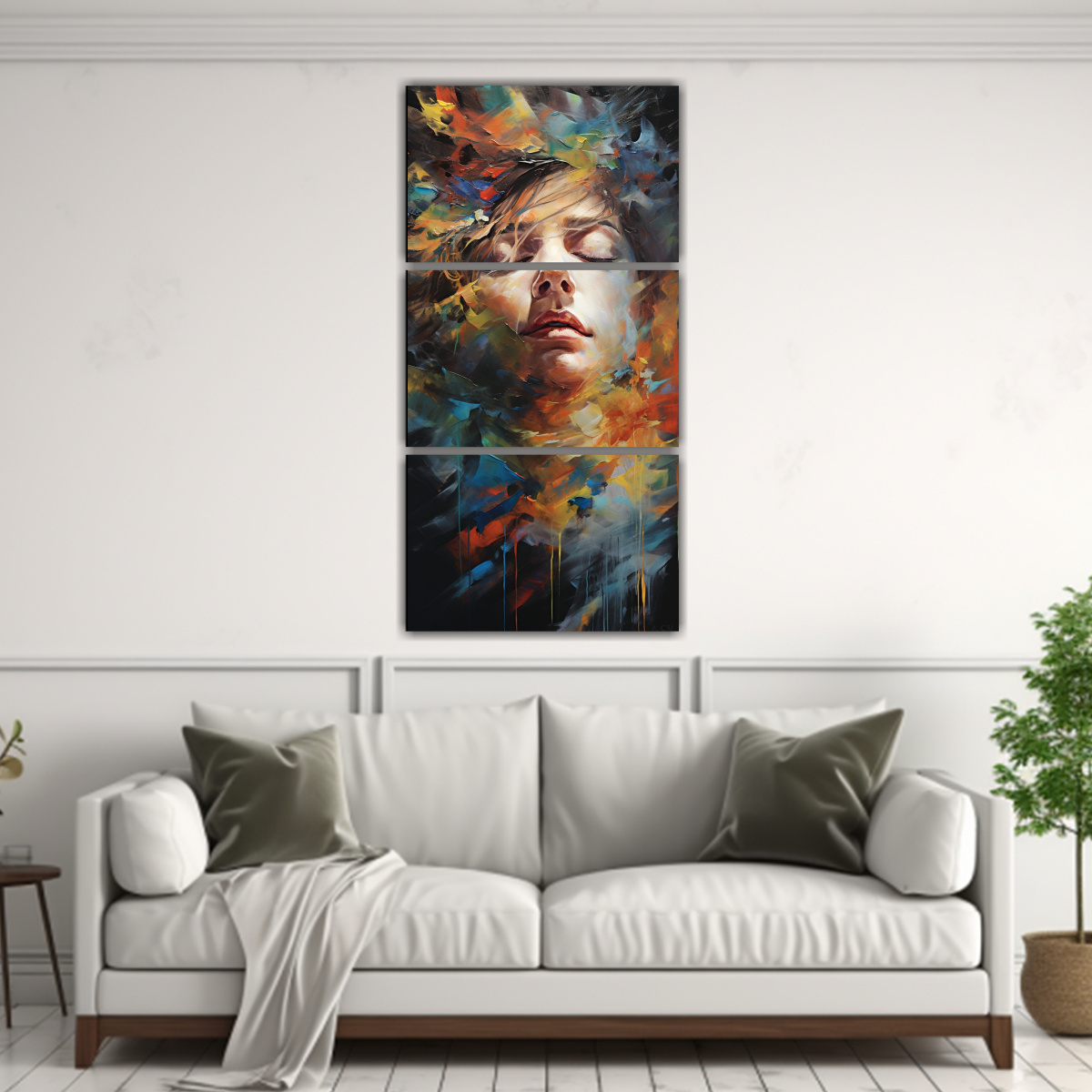 Lienzos Decorativos Set 3 Cuadros Finas Líneas Unico Viaje De La Oscuridad A La Luz Capturando La Transformación