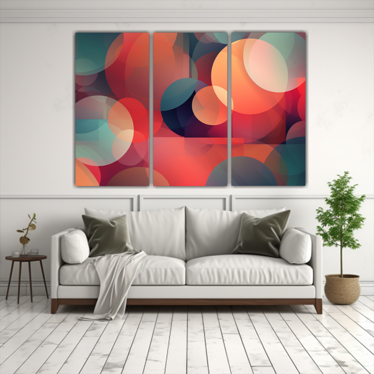 Este cuadro de formas abstractas en tonos Azul Marino grisaceo, Plateado, Carmesí, Gris, Coral y Menta es ideal para colocar en el salón principal de tu hogar, creando un punto focal de elegancia Combínalo con muebles en tonos neutros para resaltar su belleza y darle un toque moderno a tu sala de estar