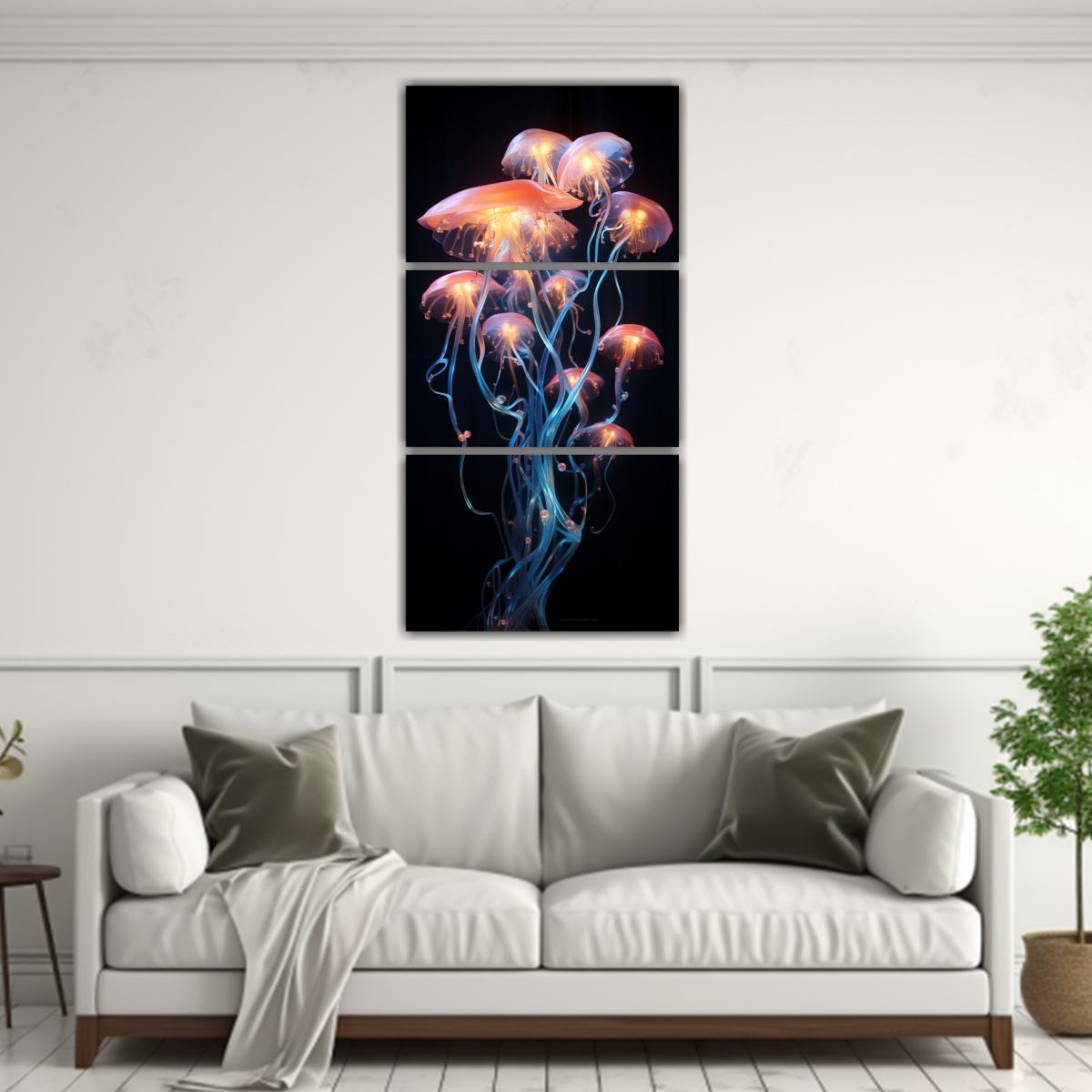 Coloca estos cuadros en el dormitorio para crear una atmósfera mágica y relajante Combínalos con tonos claros y muebles de madera, y disfruta de la belleza de las criaturas bioluminiscentes cada noche