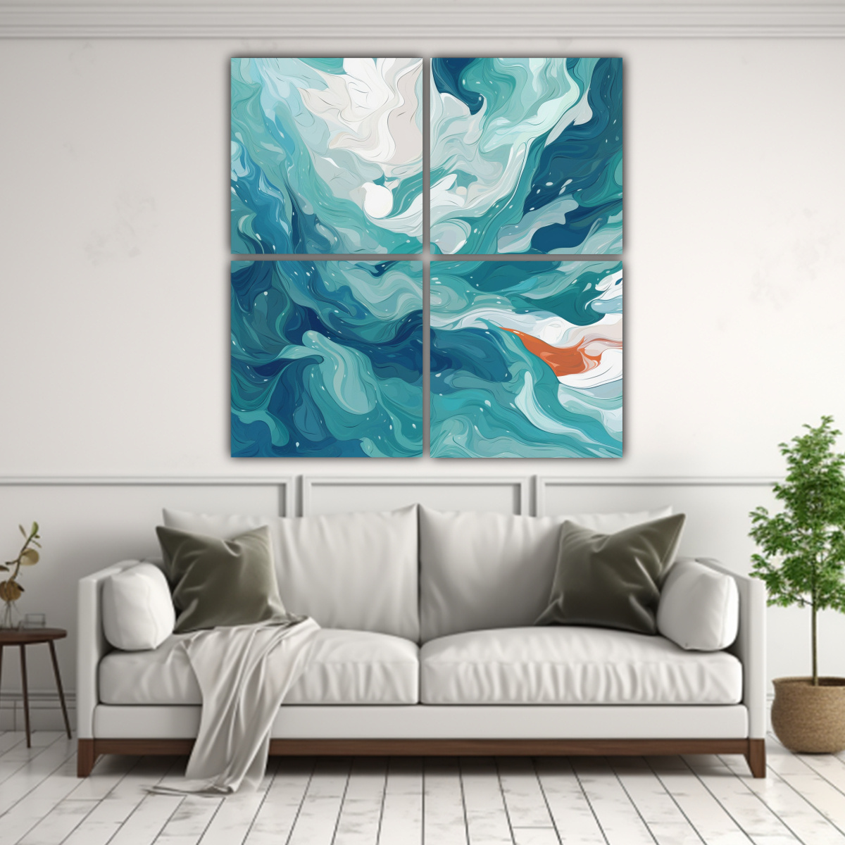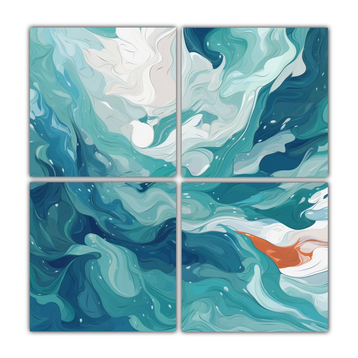 Decora tus espacios con el cuadro Lienzos Expresion Unico abstracto inspirado en el flujo del océano de DecoCuadros Con colores como el Verde Azulado, Beige, Azul Marino grisáceo, Turquesa y Coral, estos lienzos impresos en tela de alta calidad con bastidores de madera le darán un toque único y elegante a tu hogar