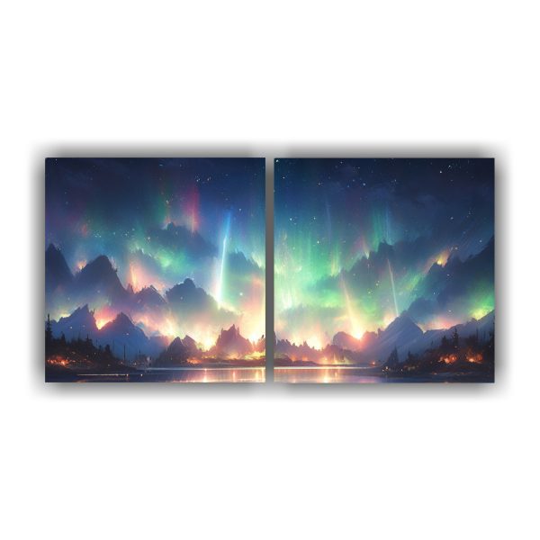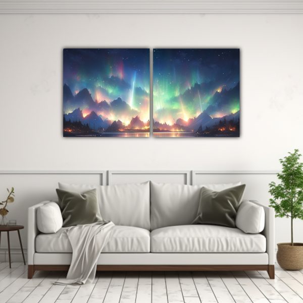 Lienzos Expresión Visión Aurora Boreal Con Colores Arcoíris Y Verde Abstracto