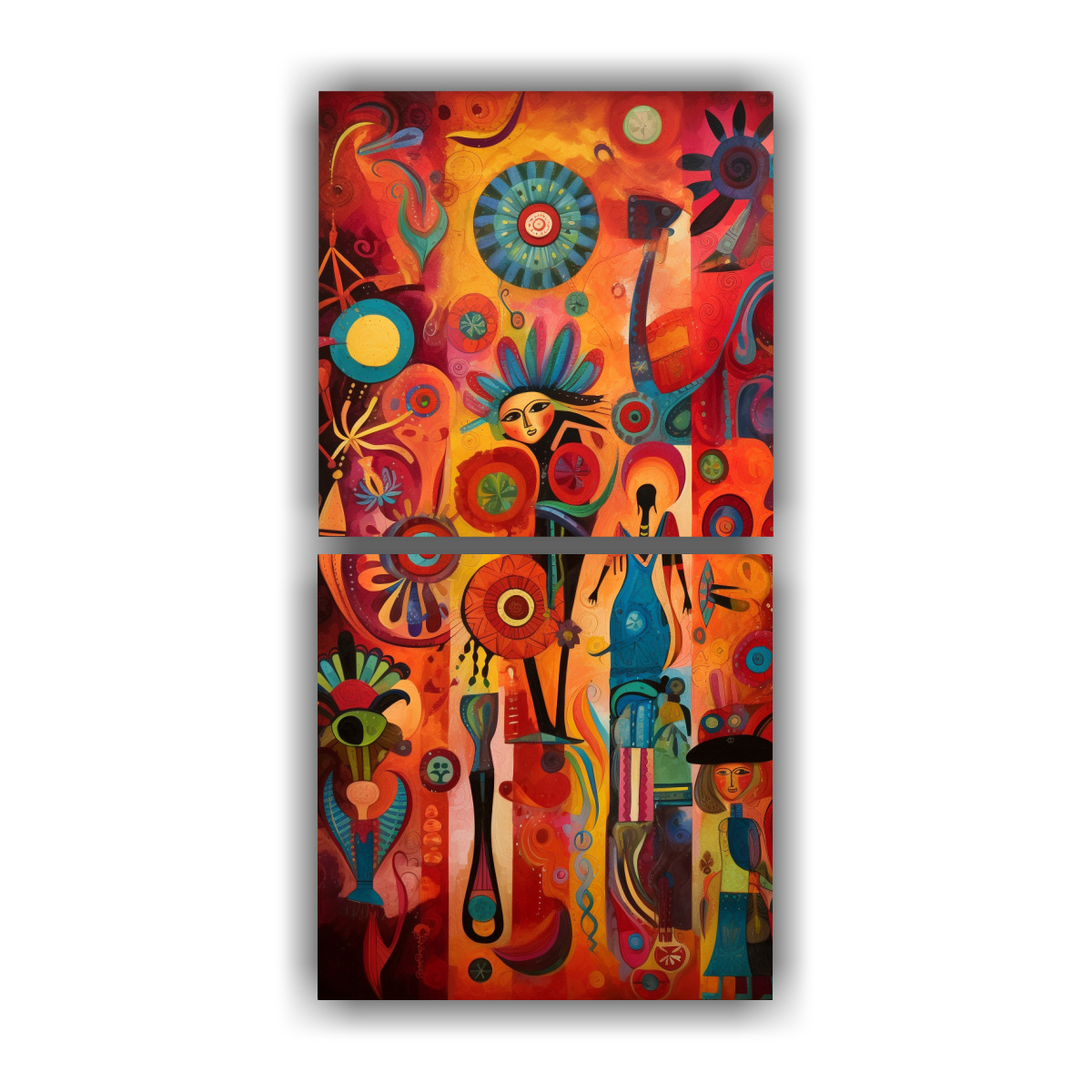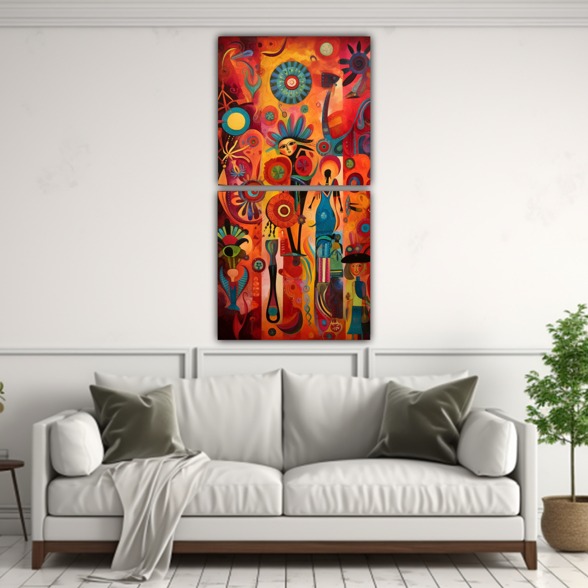 Lienzos Finas Lineas Bonito Abstracto Interpreteción Mexicana Del Arte Popular En Pinturas De Decoración Set 2