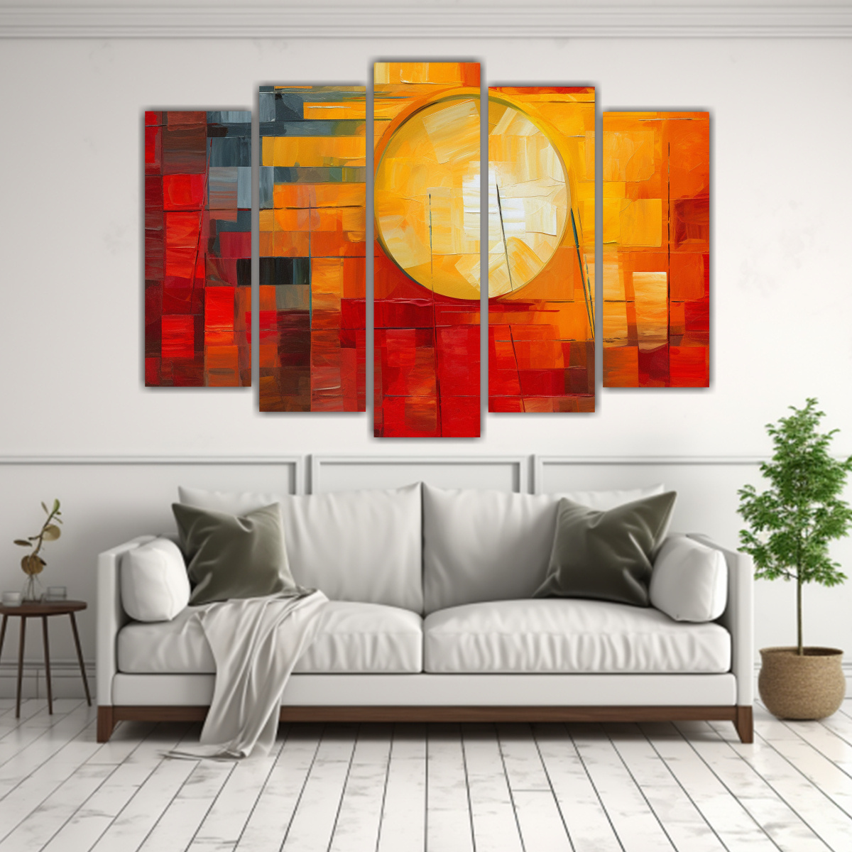 Este cuadro se vería perfecto en el salón principal sobre un sofá grisáceo, creando un contraste moderno y sofisticado Combínalo con cojines en tonos beige y anaranjados para una decoración armoniosa y acogedora