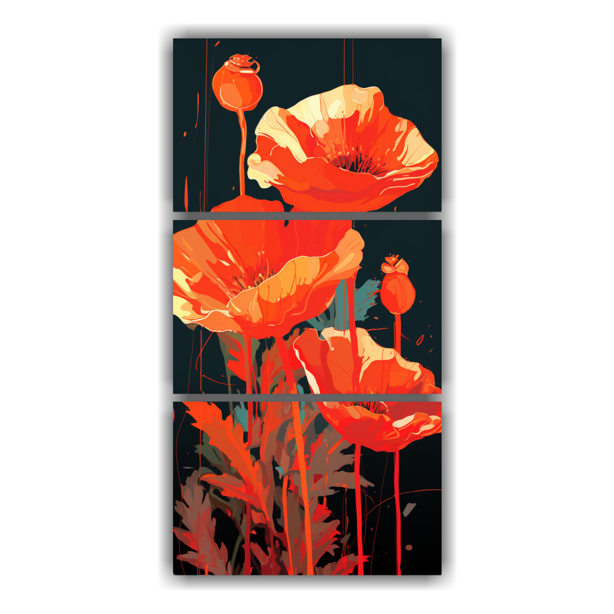 Este set de 3 lienzos en tonos rojo y naranja es ideal para decorar tu sala de estar Colócalos en una pared blanca para resaltar su vibrante colorido, combinando con muebles en tonos neutros para un contraste elegante