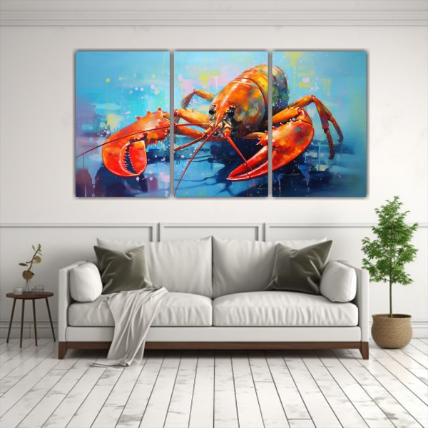 Este cuadro de Langosta en tonos coloridos es ideal para decorar tu sala de estar Colócalo sobre un sofá gris para resaltar los tonos Coral y Turquesa, añadiendo cojines en tonos Plateados y Verdes para crear un ambiente moderno y vibrante