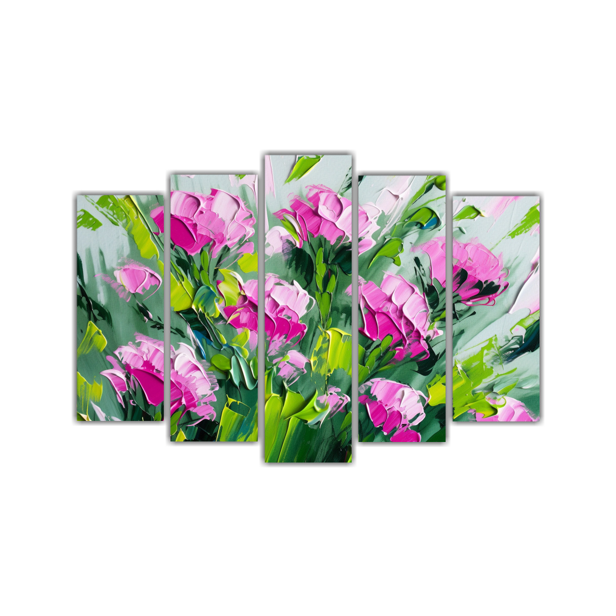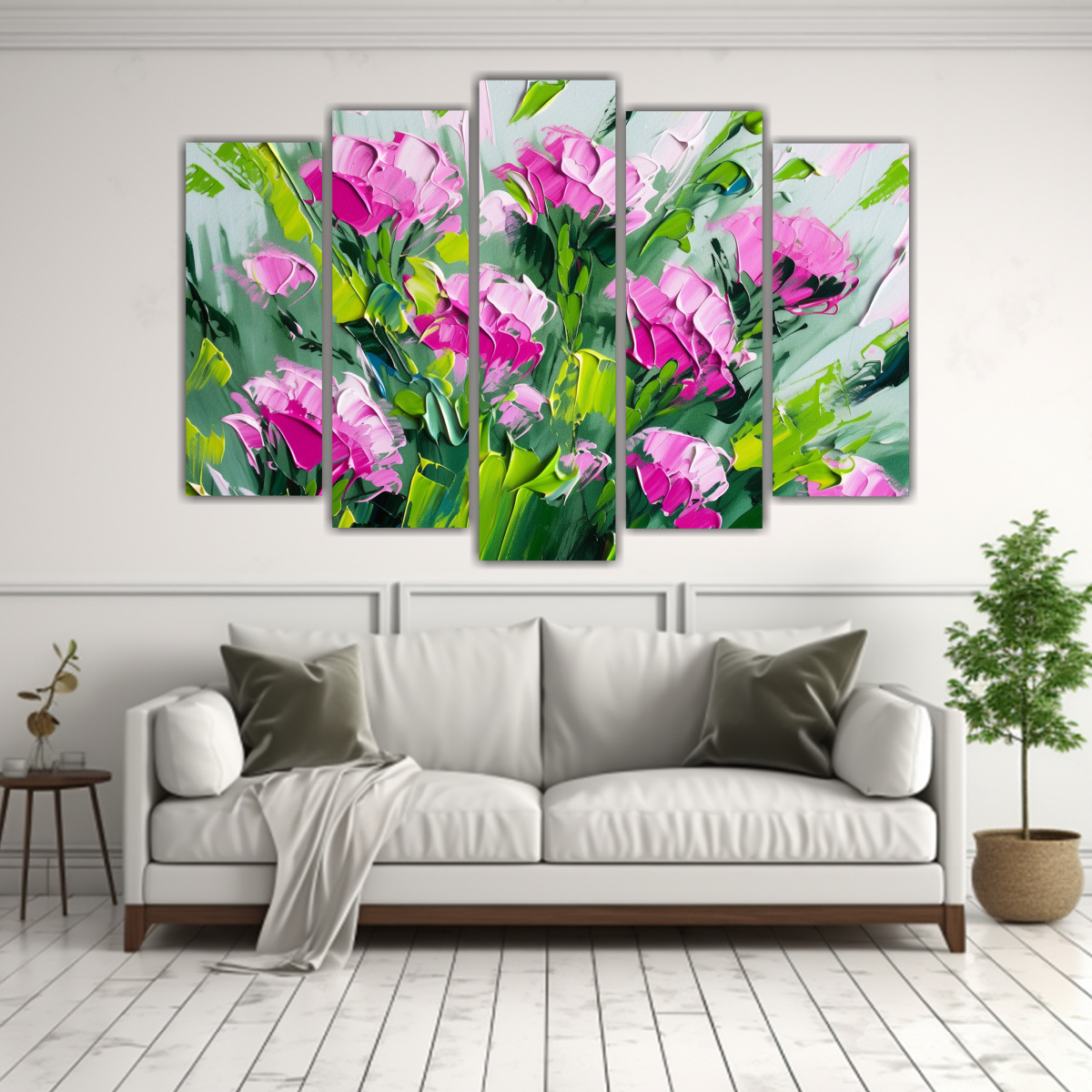 Lienzos Impresos Contraste De Verde Y Magenta Con Flores En Lienzo.