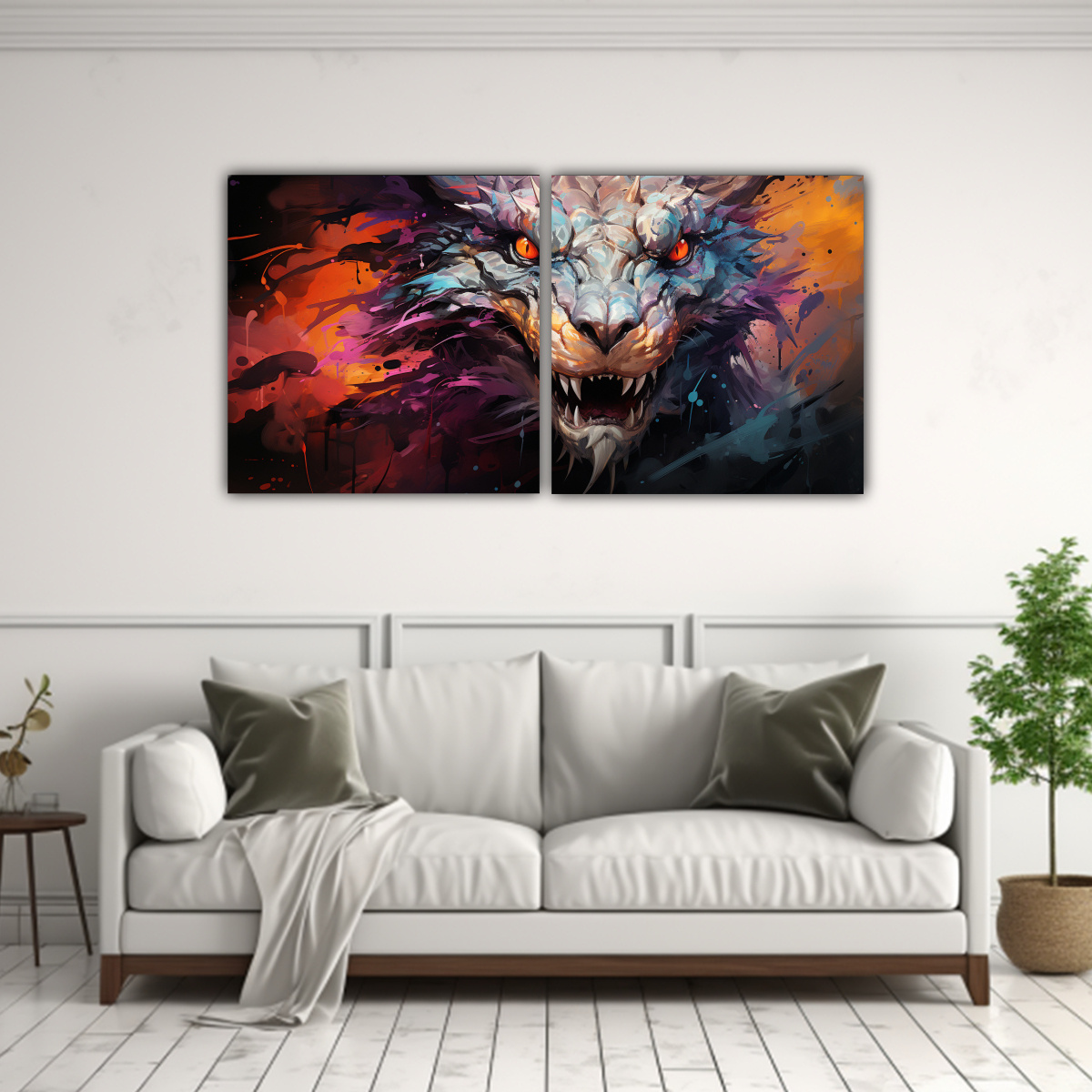 Lienzos Impresos Decorativos De Dragón En Morado Y Naranja, Estilo Neonoir