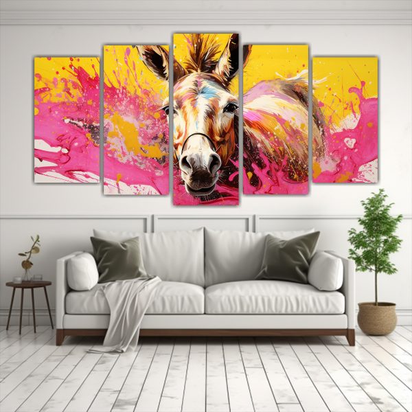 Lienzos Inspiración Clásica: Burro En Colores Dorado Y Rosa Arte Pop Neo En Estancia