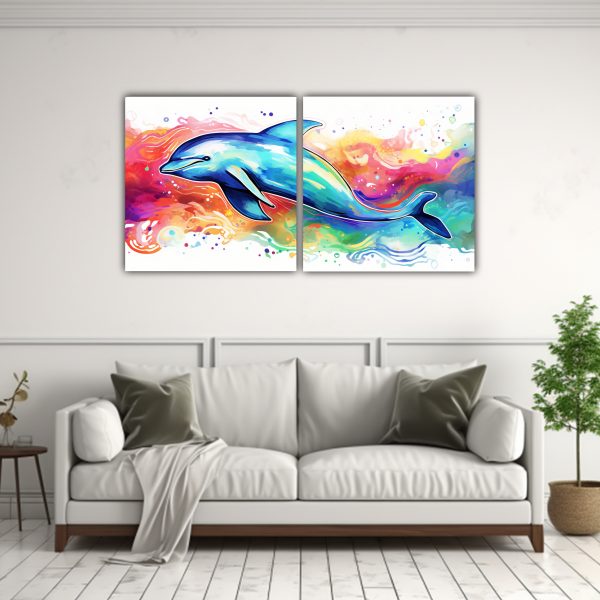 Coloca este set de 2 lienzos inspirados en la majestuosidad de la Ballena Beluga en tu sala de estar para crear un ambiente moderno y colorido Combínalos con muebles blancos para resaltar su belleza única