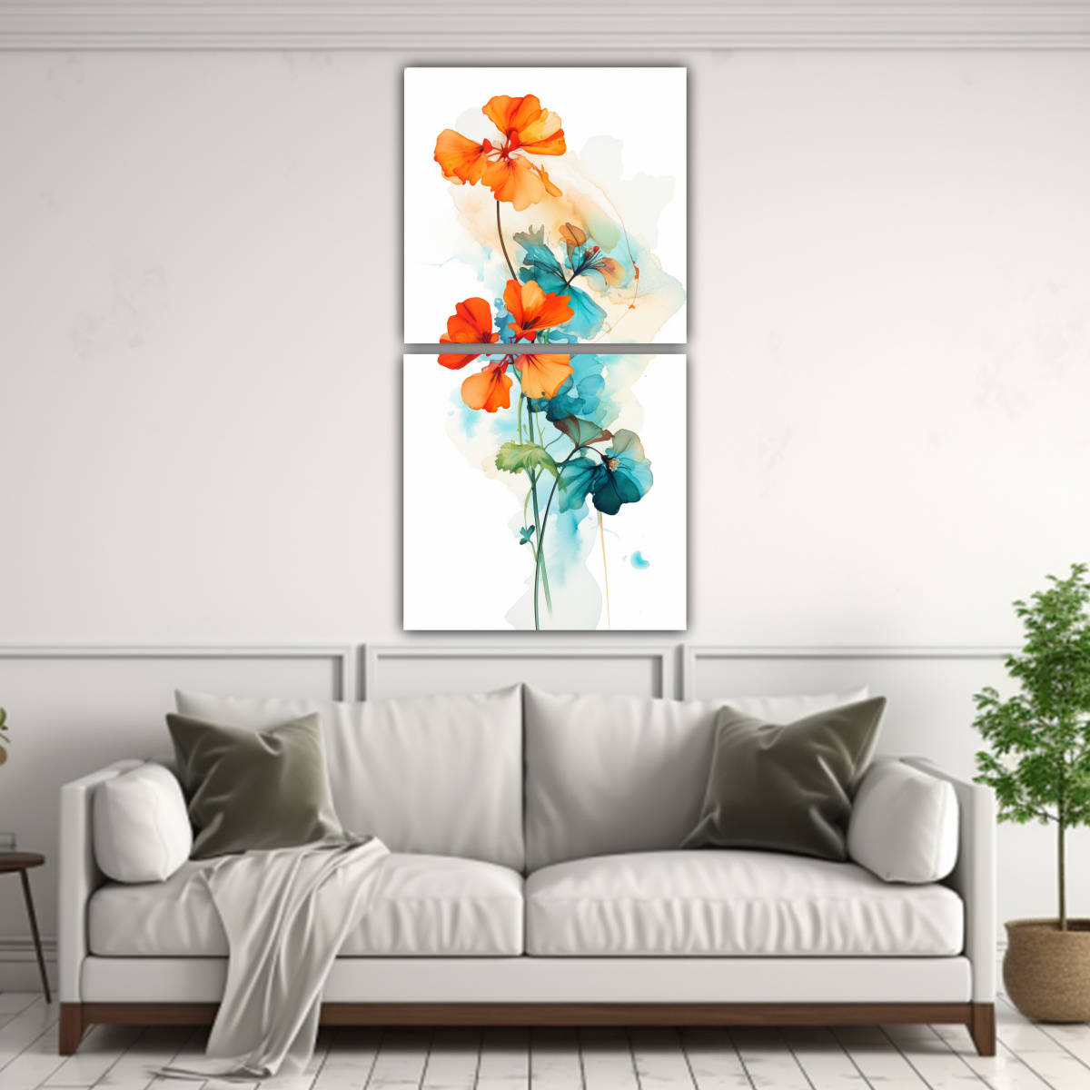 Este cuadro de Lienzos Minimalismo Geranios Turquesa Y Naranja es perfecto para añadir un toque de color y frescura en tu sala de estar Combínalo con muebles en tonos neutros como beige o gris claro para crear un contraste moderno y elegante También puedes colocarlo en tu dormitorio para añadir un toque de vitalidad y alegría ¡Deja volar tu imaginación y encuentra el lugar perfecto para este hermoso cuadro en tu hogar!