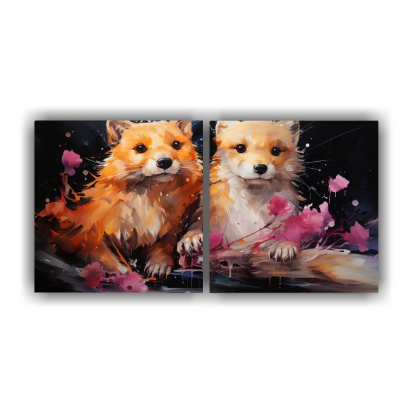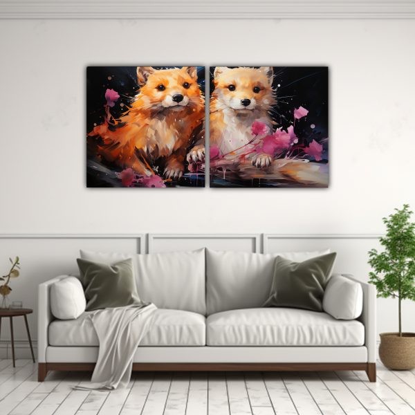 Lienzos Modernos Weasels En Colores Irisados Y Mandarina Deco Arte Neo Pop