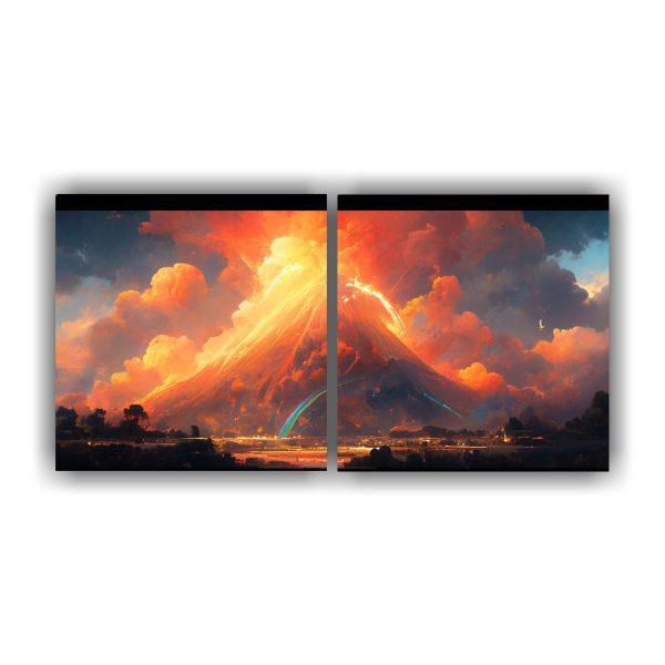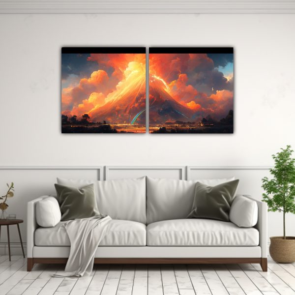 Lienzos Para Cuarto: Volcán Con Arcoíris Y Colores Abstractos Naranja