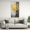 Coloca el Lienzo Patron Intenso: Naturaleza Viva Amarillo y Plata en tu sala de estar para crear un ambiente cálido y elegante Combínalo con muebles de tonos neutros y accesorios en dorado para resaltar su belleza ¡Transforma tu espacio con este cuadro exclusivo de DecoCuadros!