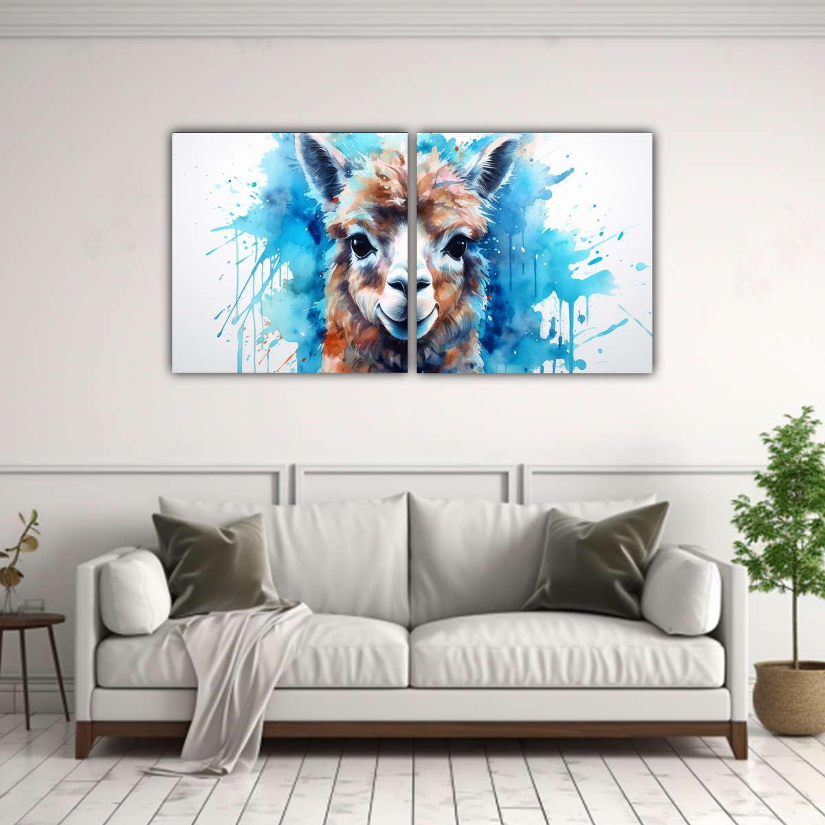 Lienzos Tela Abstracción Alpaca En Acuarelas Azules Neo Pop Art