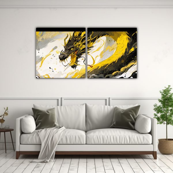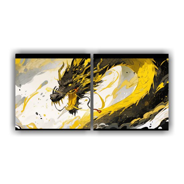 Lienzos de tela acuarela que crean una atmosfera neonoir con un dragón en tonos amarillos y dorados Entregas rápidas y gratuitas en Santiago, envíos express a regiones Atrévete a darle un toque único a tu hogar con este cuadro