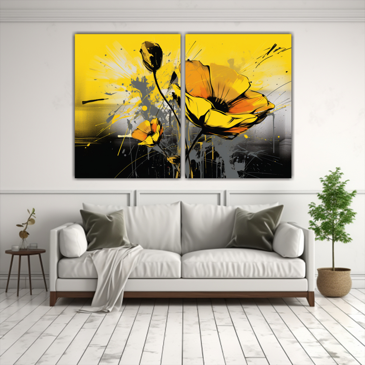 Decora tu espacio con estos dos lienzos de tela modernos que destacan los colores amarillos en un ambiente neo-noir de estilo medio Entregas rápidas y gratuitas en Santiago, envíos express a regiones