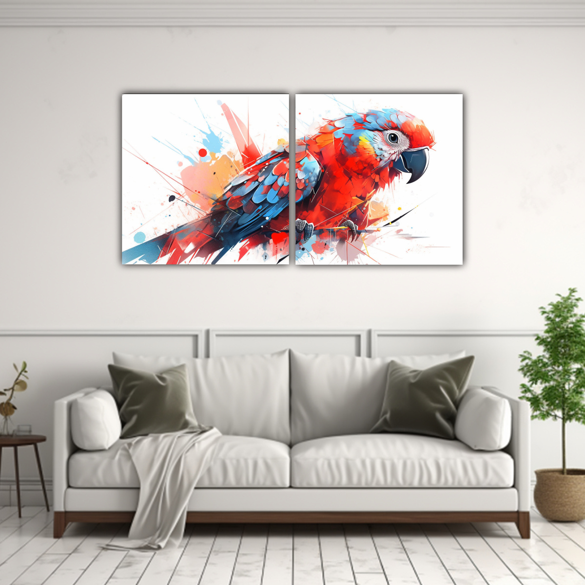 Este cuadro ‘Amazon Parrot Rojo y Azul’ sería perfecto para añadir un toque de color a tu sala de estar Colócalo sobre un sofá beige o blanco para resaltar su belleza y crear un ambiente moderno y sofisticado Complementa con cojines en tonos turquesa y coral para una decoración armoniosa