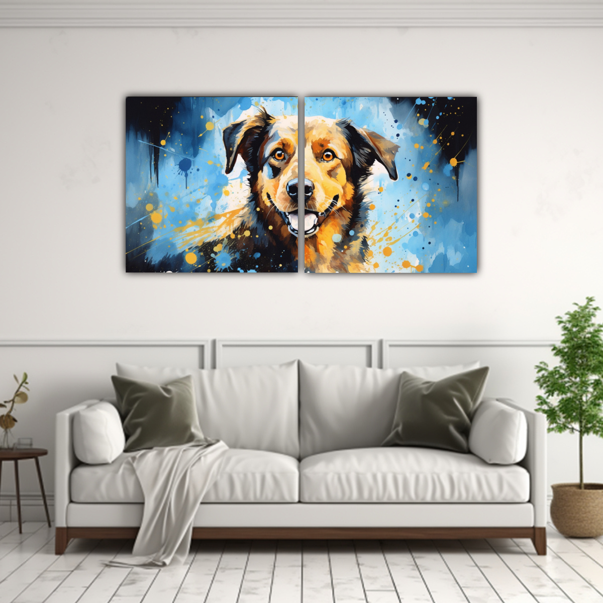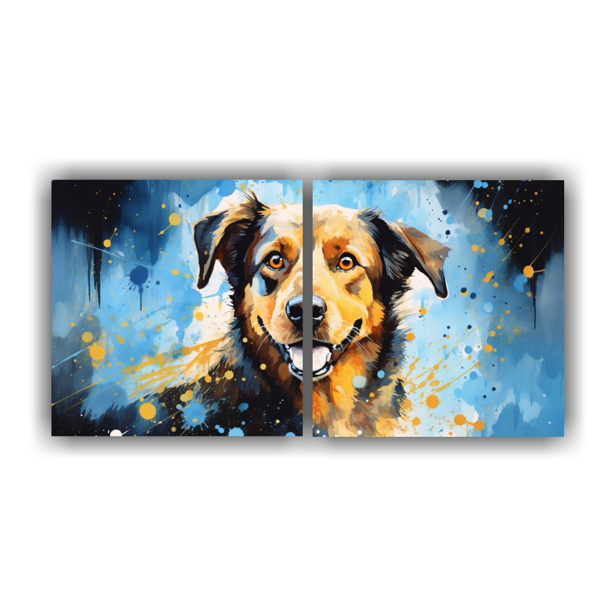 Lienzos Tela Expresión Equilibrio Visual Mascota En Oro Y Azul Arte Pop Neo.