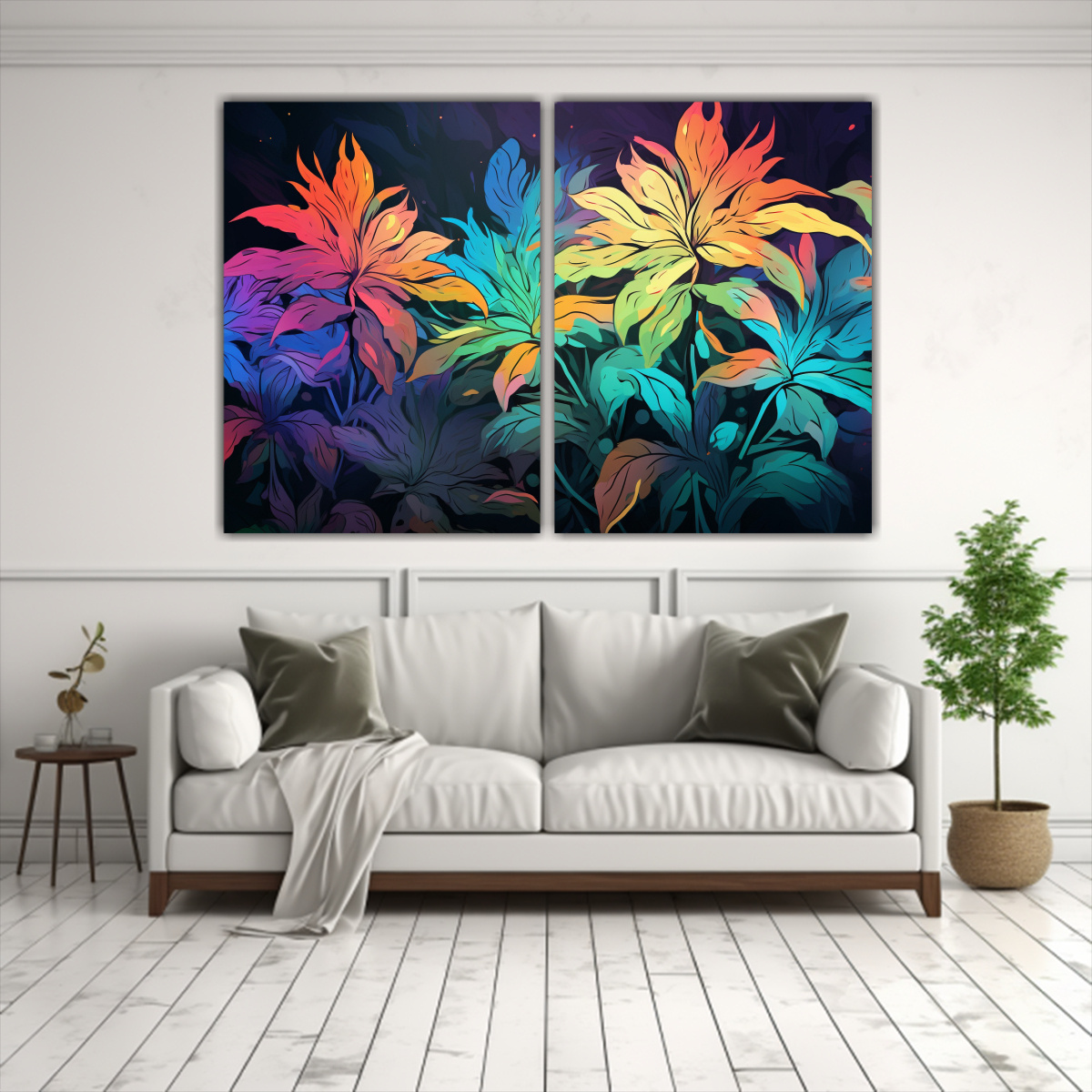Dos Lienzos De Tela Creativa Profundidad A Mint Herbs in Rainbow Colors Neo-noir atmosphere neo po Transforma tus paredes con cuadros decorativos de alta calidad en tonos vibrantes y elegantes Envíos gratis en Santiago y express a regiones