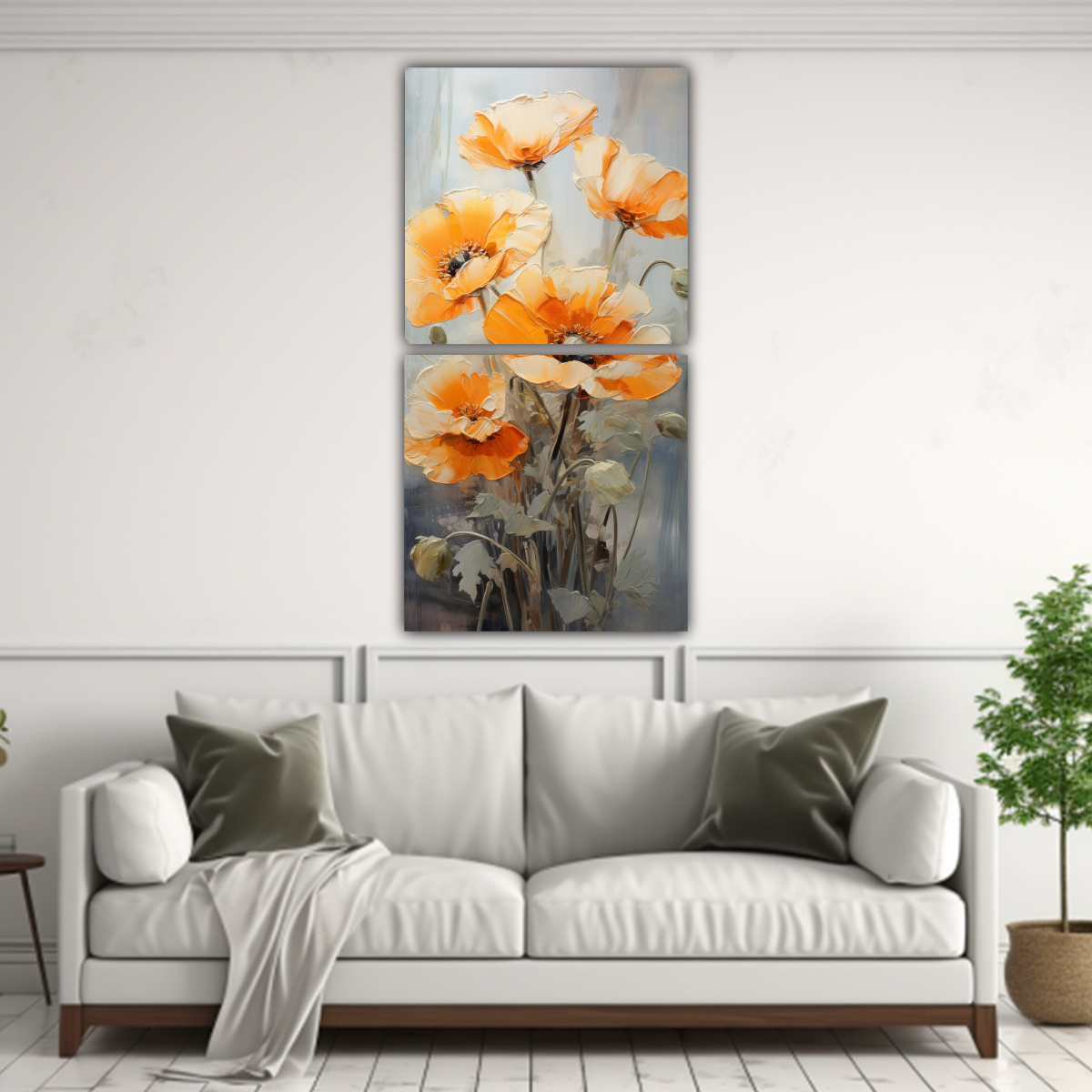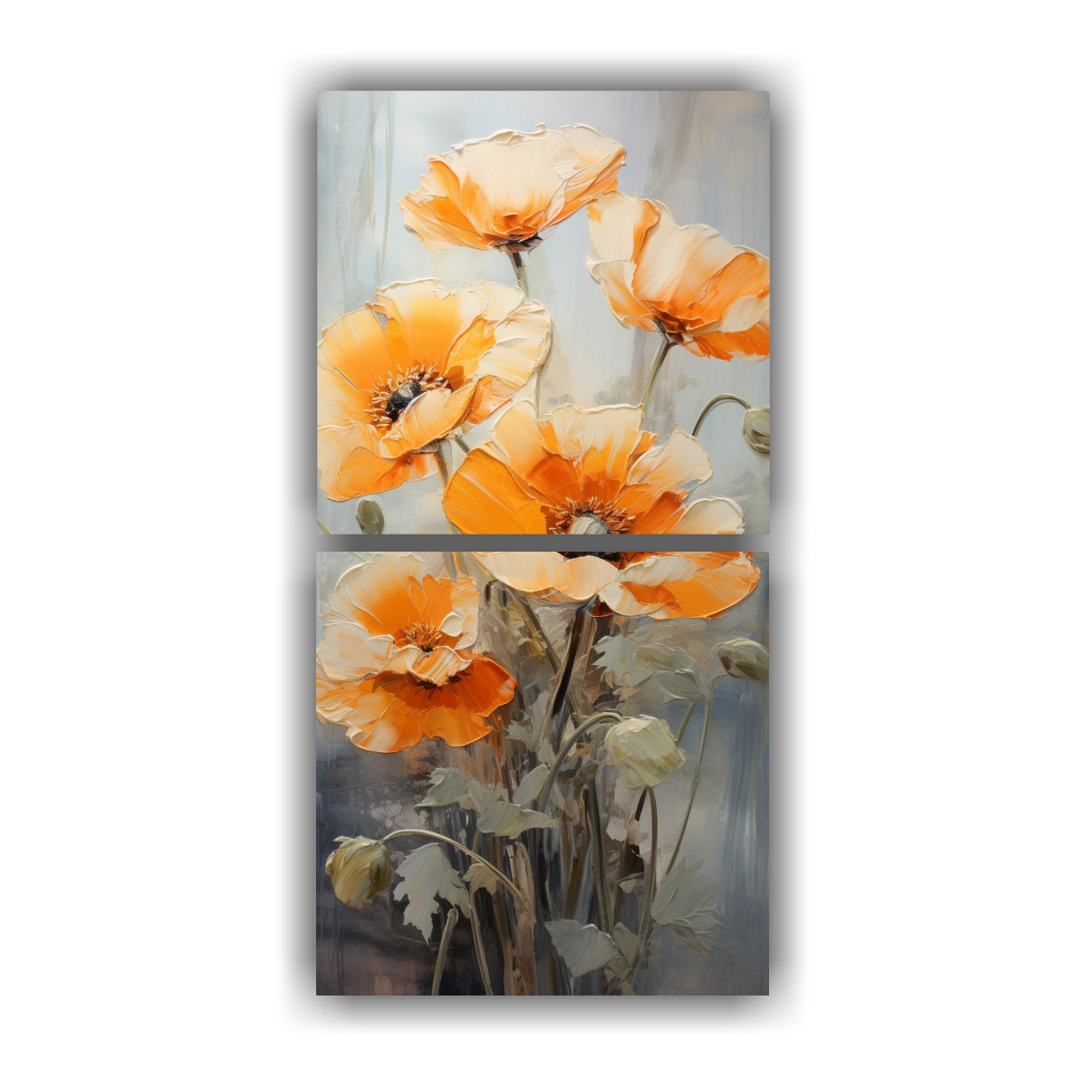 Lienzos Tela Sublimada Artesanal Estilo Decorativo Con 2 Juegos De Cuadros De Amapolas Naranja.
