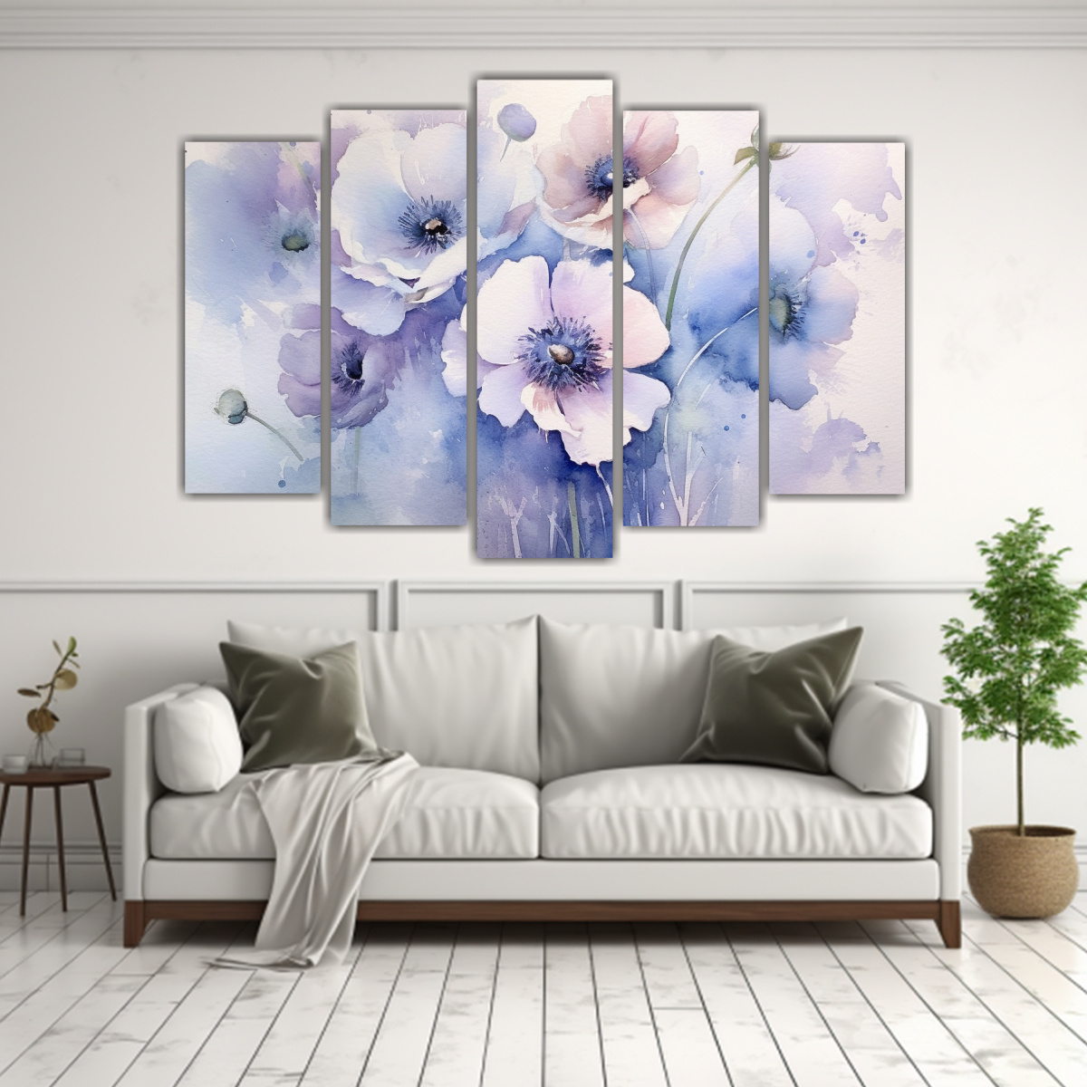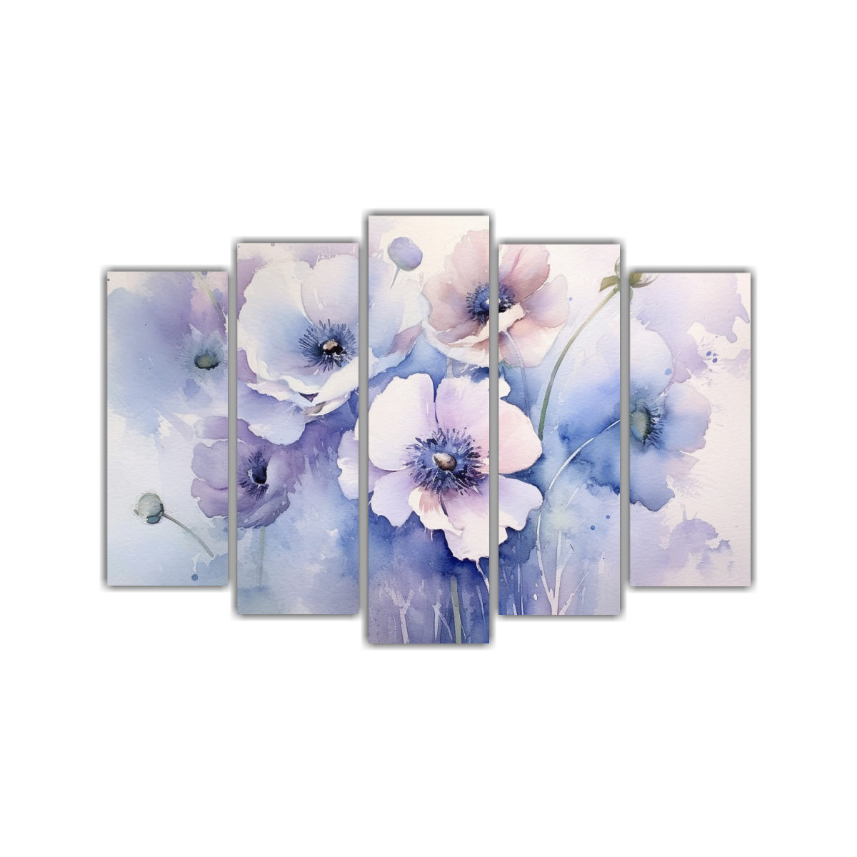 Lienzos Tela Vanguardia: Pintura Acuarela Flores Azules Y Malvas.