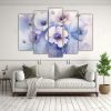 Este cuadro de flores azules y malvas sería perfecto para decorar un dormitorio o una sala de estar con una paleta de colores suaves y relajantes Puedes colocarlo sobre un mueble blanco o en una pared gris claro para resaltar su belleza y crear un ambiente tranquilo y armonioso