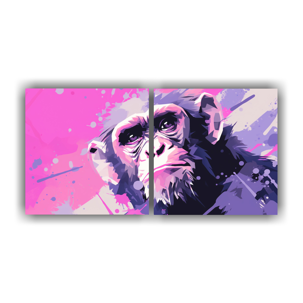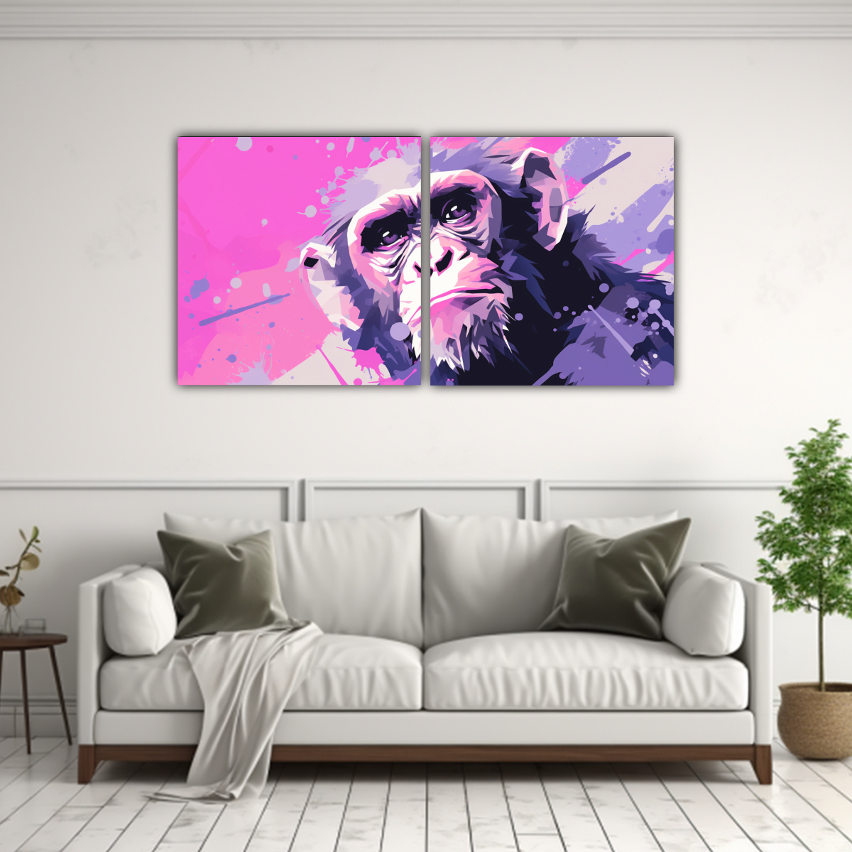 Lienzos Tema Figuras Chimpancé En Colores Taupe Y Violeta Estilo Neo Pop Art