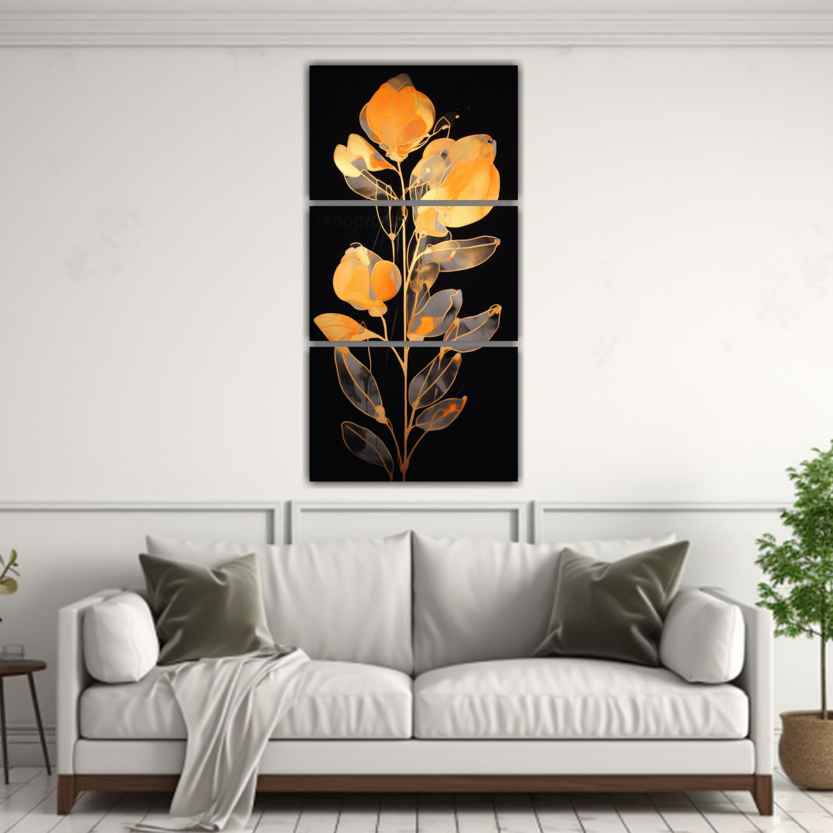 Renueva tu hogar con estos exclusivos cuadros decorativos que destacan por su diseño de Hojas de Eucalipto en tonos naranja y dorado Da un toque elegante y moderno a tus espacios ¡Envíos express a regiones!