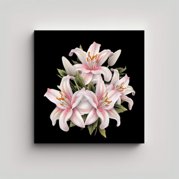 Linda Obra De Arte 3D: Lirios Blancos Y Rosados Con Brillo Metálico